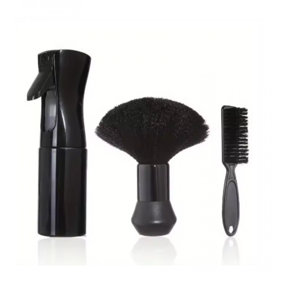 Etichete: Set accesorii pentru Frizerie, Sticlă Spray si Perii de Curățare, set frizerie cu pamatuf,