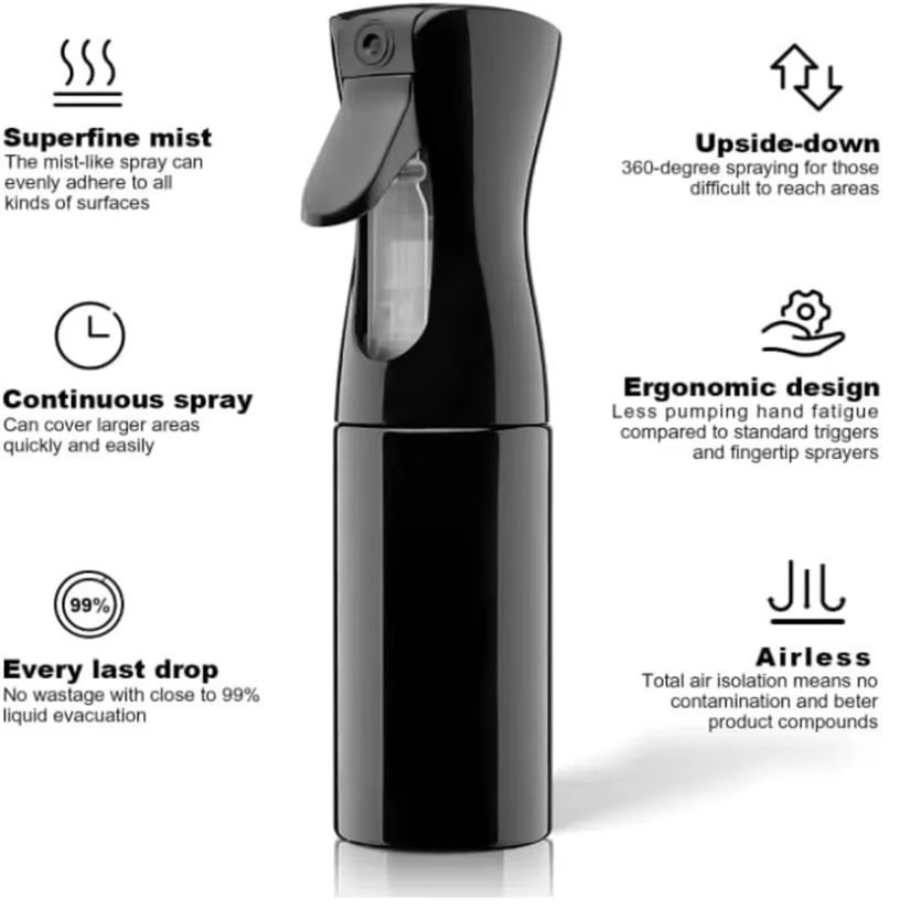 - Sticlă spray: Ideală pentru umezirea părului în timpul tunsului și coafării.